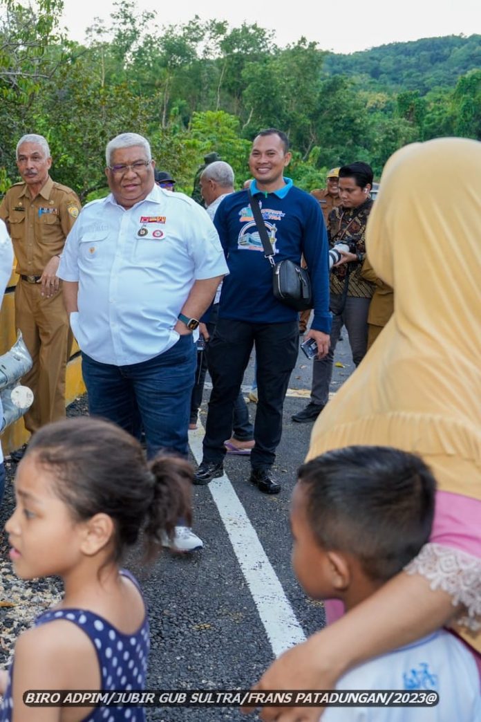 Dalam perjalanan dari Woborobo-Batu Popi, Gubernur Ali Mazi menyempatkan diri untuk turun serta melihat langsung fisik jembatan dan jalan yang dimaksud.