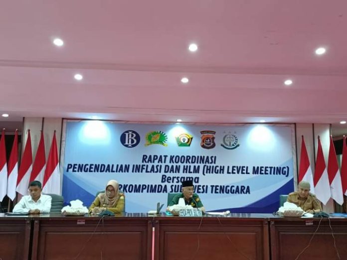 Pada sambutannya, Sekda Sultra menyampaikan dari pemaparan Mendagri terkait dengan keprihatinan pada beberapa daerah yang termasuk Sulawesi Tenggara, ada beberapa harga komoditi termasuk beras, bawang merah,bawang putih, cabe merah. Terkhusus untuk beras ada lima wilayah kenaikan cukup tinggi, terutama Buton Utara. Tim TPID harus mengunjungi dan mengelar pasar murah melibatkan bulog.