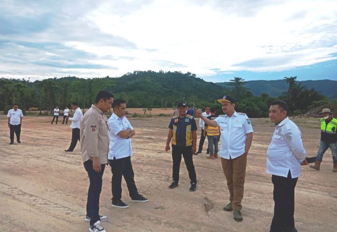 Lahan tersebut tepat berada di belakang Rumah Jabatan Bupati Koltim. Usai rapat, Bupati Koltim bersama dengan seluruh peserta rapat meninjau lokasi pelaksanaan HUT.