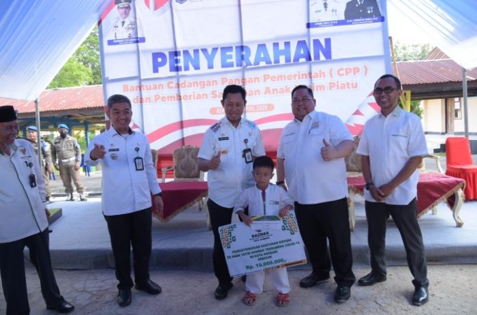 Kadin Dan Pemkot Kendari mendistribusikan santunan kepada anak yatim korban dampak covid 19.