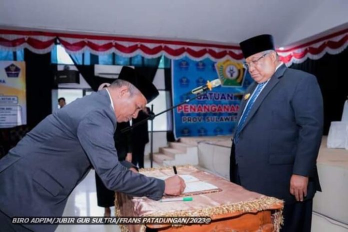 Kendari, Datasultra.com – Gubernur Provinsi Sulawesi Tenggara (Sultra), Ali Mazi melantik dan mengambil sumpah 140 Kepala Sekolah dan 11 orang Eselon III di Kantor Dinas Pendidikan dan Kebudayaan (Dikbud) Sultra, Jumat 14 April 2023.