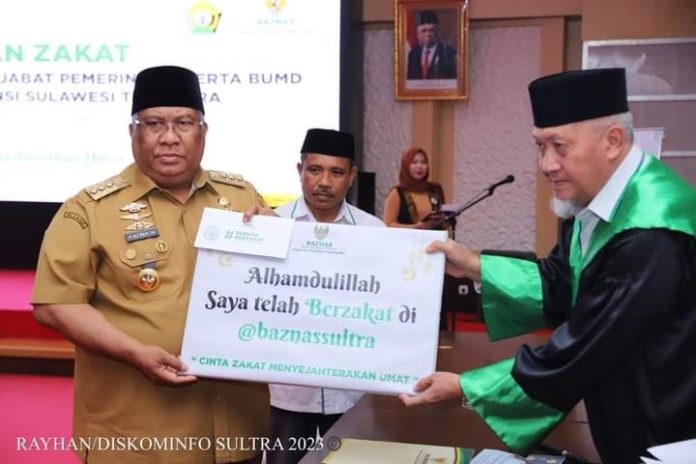 Mengawali sambutan ini, Gubernur Sultra, Ali Mazi menyampaikan bahwa salah satu kewajiban bagi umat muslim yang memiliki kemampuan secara ekonomi dan telah memenuhi ketentuan syariat adalah menunaikan zakat