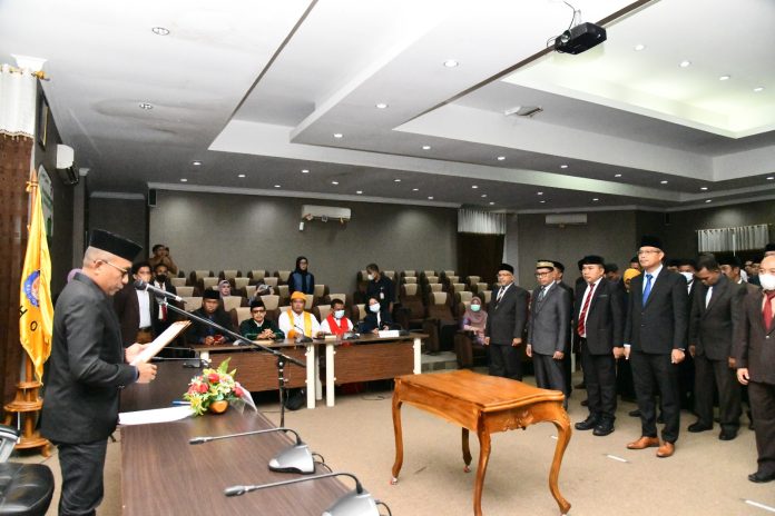 Sebanyak 51 pejabat yang dilantik itu berlangsung di ruang rapat Senat UHO sekaligus pengambilan sumpah janji jabatan.