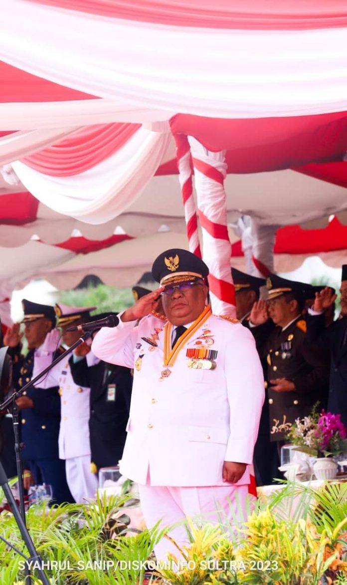Jadi Inspektur Upacara HUT ke-59 Sultra, Ini Pesan Ali Mazi