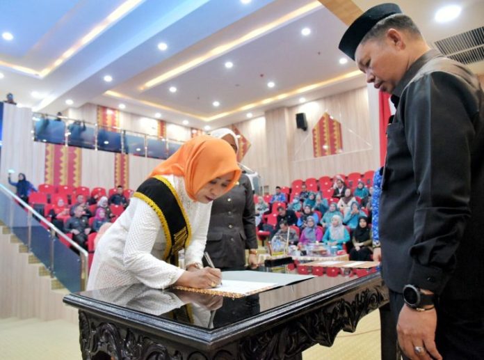 Selanjutnya, Bunda Literasi Kota Kendari menandatangani kerja sama dengan Dinas Perpustakaan dan Kearsipan Kota Kendari untuk peningkatan literasi dan penerapan Transformasi Perpustakaan Berbasis Inklusi Sosial (TPBIS).