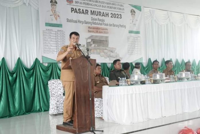 Pasar murah yang dibuka Wakil Bupati Konut H Abuhaera tersebut dalam rangka menjaga stabilisasi harga barang kebutuhan pokok dan barang penting lainnya di Wilayah Kabupaten Konut.