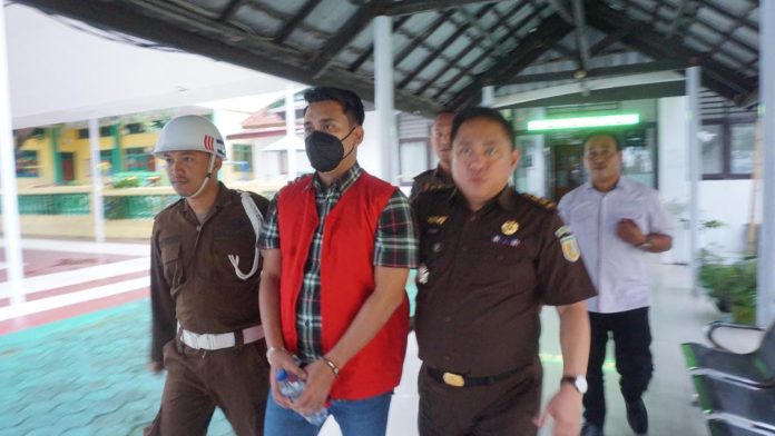 Usai menjalani pemeriksaan di Kejaksaan Tinggi (Kejati) Sulawesi Tenggara (Sultra), AA langsung mengenakan rompi tahanan.