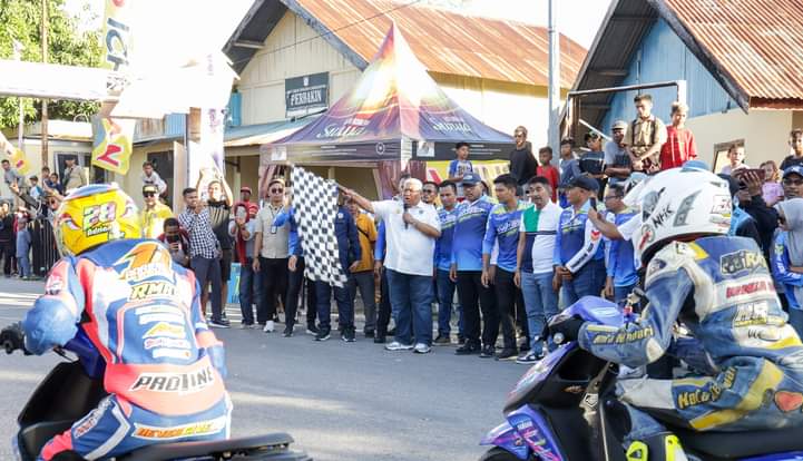 “Namun atensi beliau di sore ini, kita saksikan hadir di tengah-tengah kita bersama adalah bapak Otomotif di Provinsi Sultra, Bapak yang mempunyai pemikiran kepada perkembangan dunia otomotif di Sultra, terbukti beliau mendukung pembangunan Sirkuit yang ada di Kota Kendari dan saat ini sementara masih menunggu pembangunannya,” ucapnya.