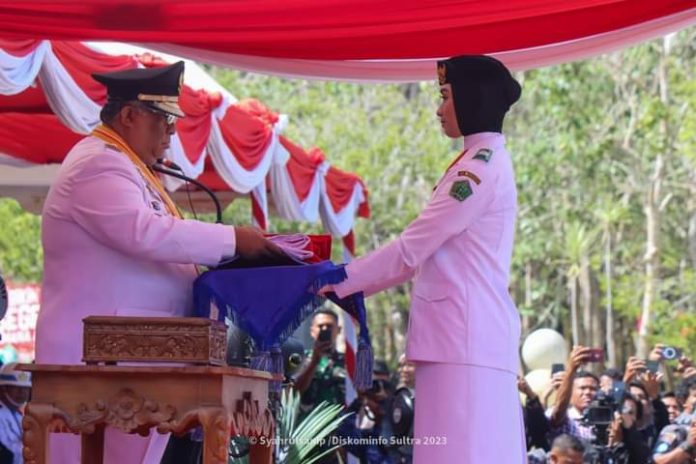 Kendari, Datasultra.com- Gubernur Sultra Ali Mazi dan Wakil Gubernur (Wagub) Lukman Abunawas menghadiri upacara peringatan Hari Ulang Tahun (HUT) Kemerdekaan RI di Lapangan Upacara Kantor Gubernur Sultra, Kamis 17 Agustus 2023.
