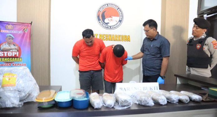 Kendari, Datasultra.com- Dua orang pria ditangkap polisi saat mengambil kiriman paket ganja seberat 1 kilogram di Kantor ID Express, Jalan Budi Utomo, Kelurahan Mataiwoi, Kecamatan Wuawua, Kota Kendari, Sabtu, 19 Agustus 2023 sekira pukul 10.30 Wita.