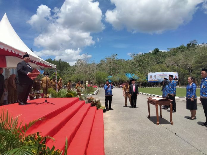 Kendari, Datasultra.com – Sebanyak 7 ribu Pegawai Negeri Sipil (PNS) dan Pegawai Pemerintah dengan Perjanjian Kerja (PPPK) di lingkungan Pemerintah Provinsi (Pemprov) Sulawesi Tenggara (Sultra) mengikuti pengambilan sumpah dan janji pegawai, di Kantor Gubernur Sultra, Senin 28 Agustus 2023.