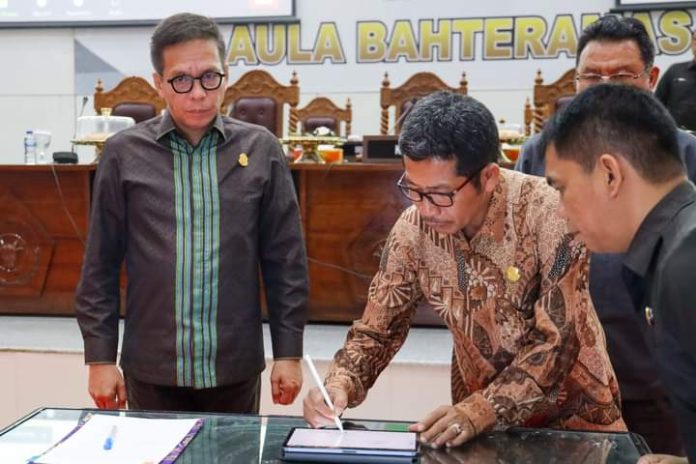 Kendari, Datasultra.com- Pemprov dan DPRD Sultra menyepakati Perubahan KUA-PPAS tahun anggaran 2023 melalui rapat paripurna, Kamis 21 September 2023. Kesepakatan tersebut ditandatangani oleh Pj Gubernur Sultra Andap Budhi Revianto dan Ketua DPRD Sultra Abdurrahman Shaleh.