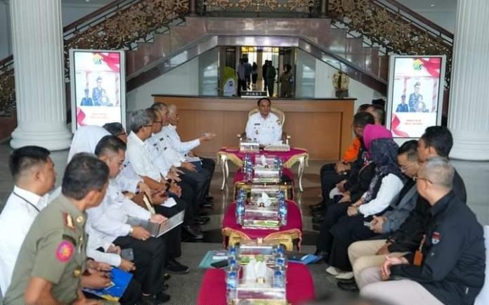 Pj Gubernur Sultra, Andap Budhi Revianto menerima audiensi KPU Sultra, Bawaslu dan Badan SAR Nasional di Kantor Gubernur Sultra( Foto: Ist).