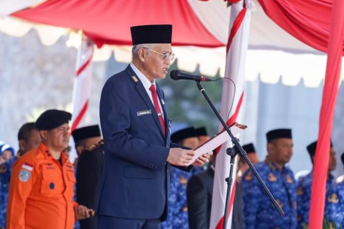 Kendari, Datasultra.com – Sekretaris Daerah Sulawesi Tenggara (Sultra), Asrun Lio menjadi Inspektur Upacara (Irup) pada peringatan Hari Kesaktian Pancasila di Lapangan Kantor Gubernur Sultra, Minggu 1 Oktober 2023.