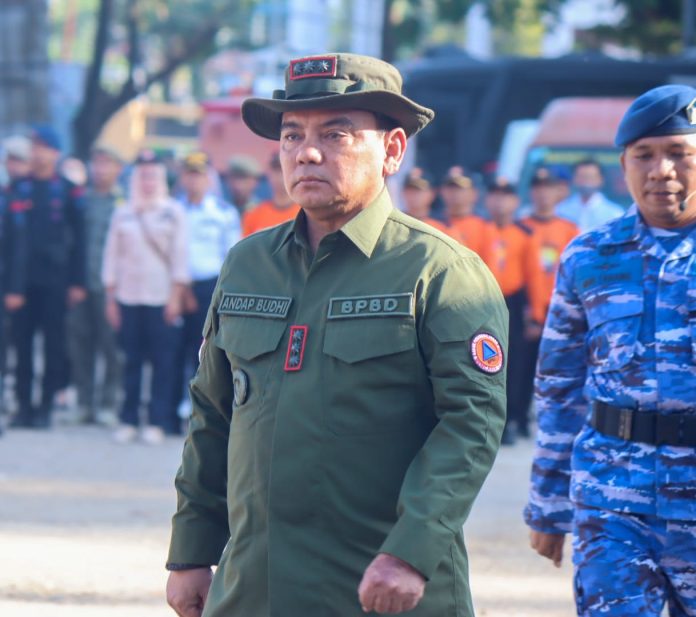 Kendari, Datasultra.com- Pj Gubernur Sultra Andap Budhi Revianto membuka apel siaga bencana dalam rangka peringatan bulan pengurangan risiko bencana (PRB) di lapangan Ex MTQ Kota Kendari, 11 Oktober 2023.