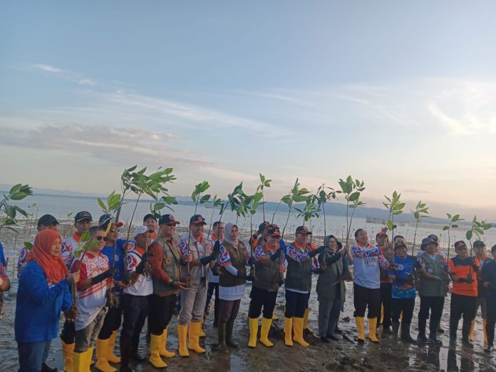 Konawe, Datasultra.com- Badan Nasional Penanggulangan Bencana (BNPB) bersama Pemerintah Provinsi (Pemprov) Sulawesi Tenggara (Sultra) menggelar penanaman 7 ribu bibit pohon mangrove di teluk Desa Tapulaga Kecamatan Soropia Kabupaten Konawe, Kamis 12 Oktober 2023.