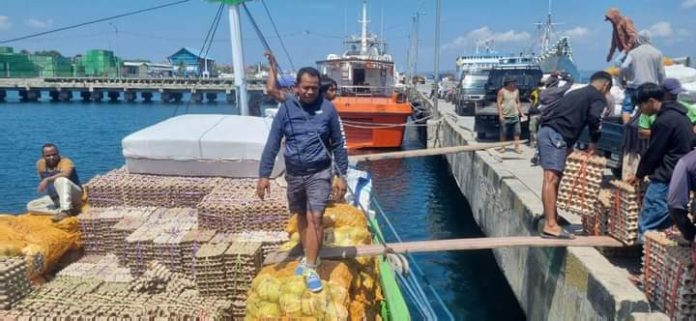 Kepala Dinas Perindustrian dan Perdagangan (Perindag) La Ode Ali Hasan menuturkan, sebuah Kapal Motor (KM) 477 telah masuk Baubau yang mengangkut belasan jenis komoditi bahan pokok di Pelabuhan Murhum dari Pelabuhan Bajoe Kabupaten Bone Sulawesi Selatan, Minggu 29 Oktober 2023.