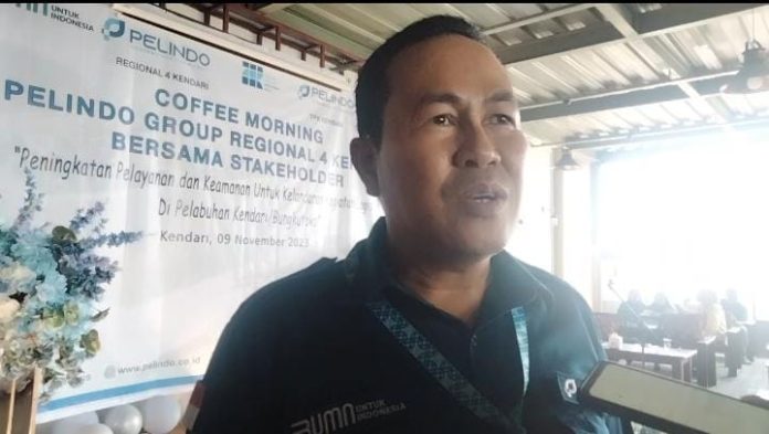 GM Pt Pelabuhan Indonesia (Persero) Regional 4 Kendari, Suparman. Saat ditemui oleh awak media usai coffe morning di salah satu warkop Kendari, Kamis 9 November 2023.
