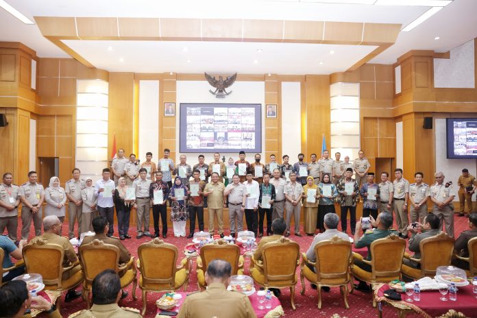 “Ini suatu capaian yang luar biasa, selaku Pj Gubernur saya mendukung Kakanwil dan Kepala Kantor beserta jajaran BPN untuk terus melakukan langkah-langka sertifikasi tanah”, pungkasnya. (Rk)