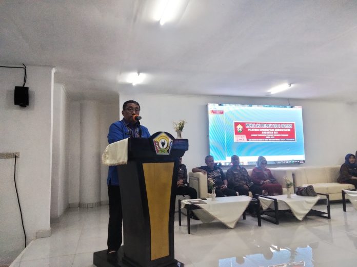 Kepala BPSDM Sultra Syahruddin Nurdin saat membawa sambutan pada acara pameran PKA Angkatan XIII. Kamis 14 Desember 2023. (Foto : Rk)