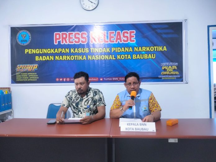 Baubau, Datasultra.com- Badan Narkotika Nasional (BNN) Kota Baubau menggelar press release akhir tahun yang dipusatkan di Kantor BNN Baubau, Sabtu 23 Desember 2023.