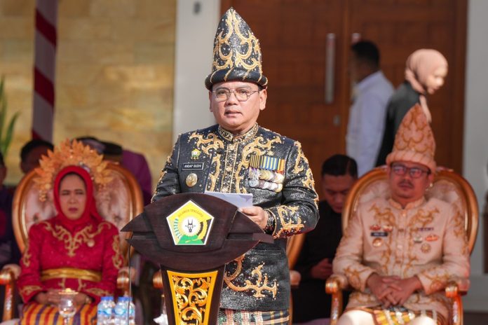 Kolaka Timur, Datasultra.com – Penjabat (Pj) Gubernur Sulawesi Tenggara (Sultra) Andap Budhi Revianto menjadi Inspektur Upacara pada peringatan Hari Jadi ke-11 Kabupaten Kolaka Timur di Pelataran Rujab Bupati Koltim, Kamis 11 Januari 2024.