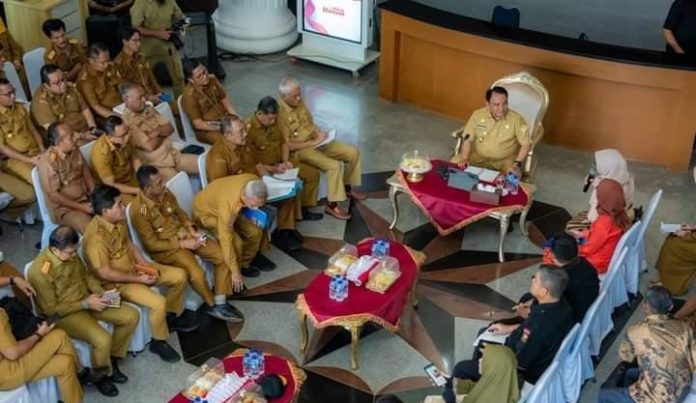 Kendari, Datasultra.com- Penjabat (Pj) Gubernur Sulawesi Tenggara (Sultra), Andap Budhi Revianto menerima audiensi bersama organisasi masyarakat dan instansi vertikal di lobby kantor Gubernur Sultra, Selasa 16 Januari 2024.