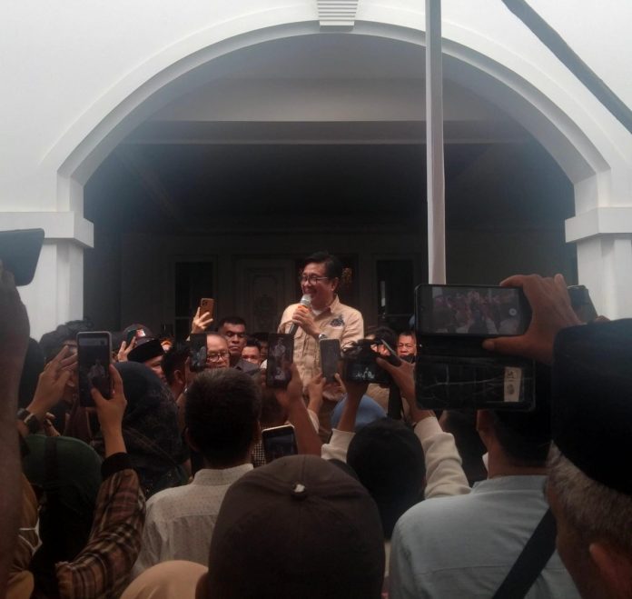 Kendari, Datasultra.com- Ratusan warga Sulawesi Tenggara (Sultra) menyambut kedatangan Nur Alam di kediamannya di jalan Ahmad Yani, Kelurahan Anaiwoi, Kota Kendari, Kamis 18 Januari 2024.