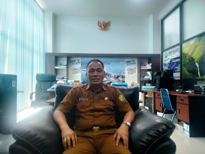 Kabid SMK Dikbud Sultra, J H. Bawondes, saat ditemui oleh awak media diruang kerjanya. (Foto : Rk)