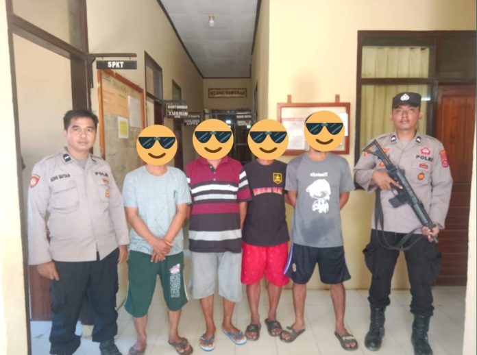Kapolsek Angata IPDA Hery Mulyanto mengatakan, kejadian Jumat 16 Februari 2024 sekira pukul 20.00 Wita. Empat pelaku yang diamankan yakni IN (42), SW (47), HS (37), dan PI ( 43 ).