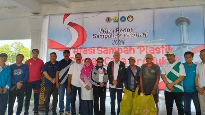 Sekda Sultra, Asrun Lio menghadiri peringatan Hari Peduli Sampah Nasional (HPSN) yang mengusung tema Atasi Sampah Plastik Dengan Cara Produktif, Jumat 23 Februari 2024.
