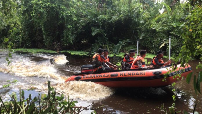 Tim SAR melakukan pencarian terhadap seorang anak 12 tahun yang terekam buaya di Kabupaten Buton Tengah (Buteng).