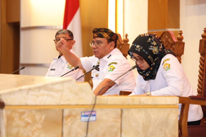 Kendari, Datasultra.com- Pj Gubernur Sulawesi Tenggara (Sultra), Andap Budhi Revianto memimpin Rapat Koordinasi (Rakor) dalam menghadapi lebaran Idul Fitri 1445 Hijriah di Ruang Pola Kantor Gubernur Sultra, Rabu 27 Maret 2024.