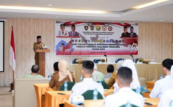 Sekda Asrun Lio membuka Seleksi Calon Paskibraka Tingkat Provinsi Sulawesi Tenggara (Sultra) tahun 2024 di Hotel Kubra Kendari, Senin 13 Mei 2024.