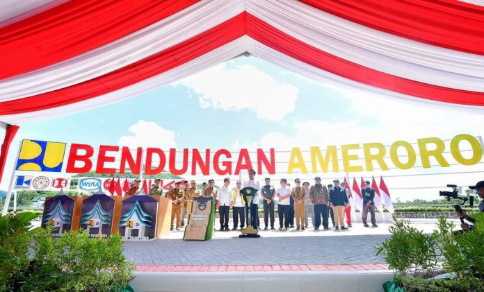 Jokowi menjelaskan, Bendungan Ameroro ini mulai di bangun pada tahun 2020, selesai di akhir tahun 2023. Bendungan Ameroro adalah bendungan ke-40 yang telah dibangun oleh Pemerintah Pusat melalui Kementrian PUPR RI dengan total anggaran Rp 1,57 triliun dengan daya tampung 88 juta M³ dengan luas kawasan mencapai 398 Ha.
