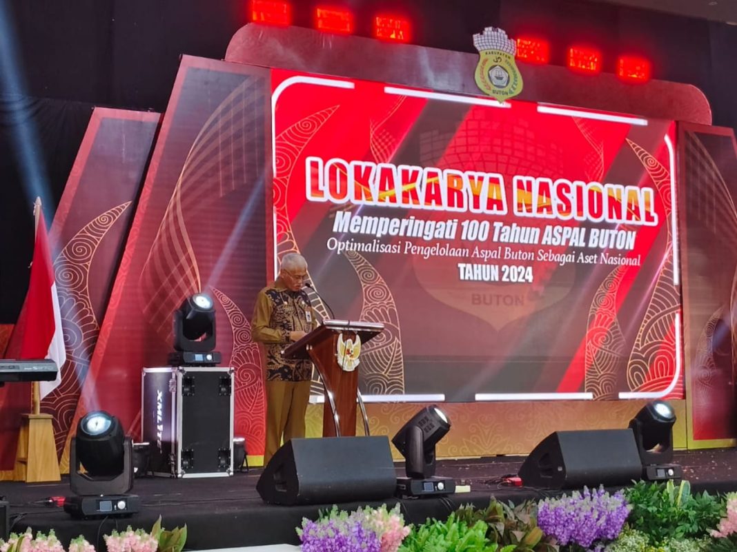 Baubau, Datasultra.com- Sekda Sultra, Asrun Lio membuka kegiatan Lokakarya Nasional memperingati 100 tahun Aspal Buton dengan tema Optimalisasi Pengelolaan Aspal Buton sebagai Aset Nasional di Nirwana Buton Villa Kota Baubau, Selasa 14 Mei 2024.
