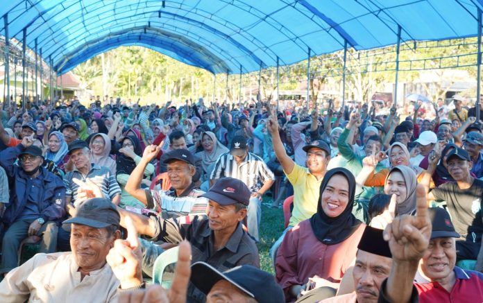 Dihadapkan ribuan warga kecamatan Moramo, mantan Gubernur Sultra dua periode yang juga putra Moramo Nur Alam meminta agar warga Moramo bersatu mendukung pasangan Radhan Rasyid di Pilbup 2024.