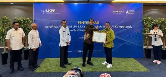 Sertifikat Akreditasi ini diberikan langsung oleh Kepala Lembaga Kebijakan Pengadaan Barang dan Jasa Pemerintah (LKPP) Republik Indonesia, dan di saksikan langsung Kepala BPSDM Kementerian Dalam Negeri Republik Indonesia.