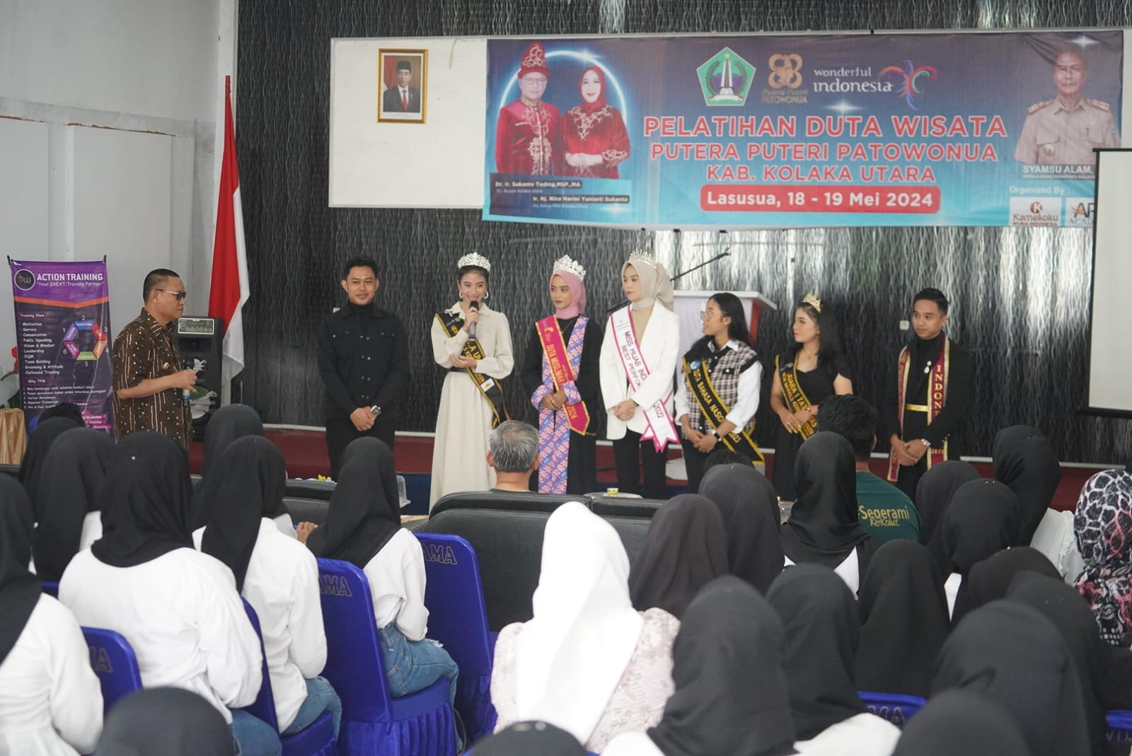 Training ini berlangsung selama dua hari, Sabtu-Minggu 18-19 Mei 2024, bertempat di Hotel Utama Lasusua Kolaka Utara. Pelatihan Duta Wisata Putera Puteri Patowonua dibuka langsung oleh Penjabat (Pj) Bupati Kolaka Utara Dr. Ir. Sukanto Toding, MSP.MA.