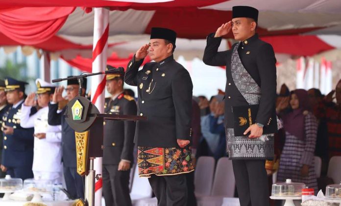 Pj Gubernur Sultra, Andap Budhi Revianto menjadi Inspektur upacara pada peringatan yang mengangkat tema Pancasila Jiwa Pemersatu Bangsa Menuju Indonesia Emas 2045 tersebut.