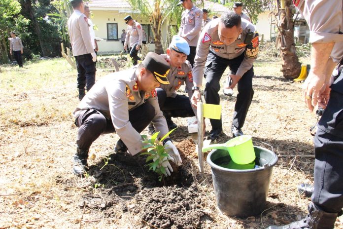 Baubau, Datasultra.com- Polres Baubau menggelar penanaman 250 pohon di lahan tanah belakang Kantor Polsek Bungi Kecamatan Bungi Kota Baubau, Rabu 12 Juni 2024.