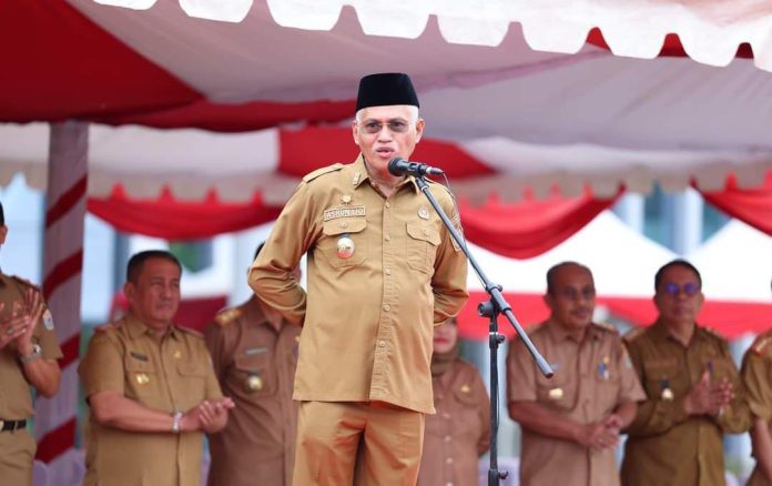 Kendari, Datasultra.com- Sekretaris Daerah (Sekda) Provinsi Sulawesi Tenggara (Sultra), Asrun Lio memimpin apel gabungan ASN Lingkup Pemprov Sultra di Halaman Kantor Gubernur Sultra, Senin 24 Juni 2024.