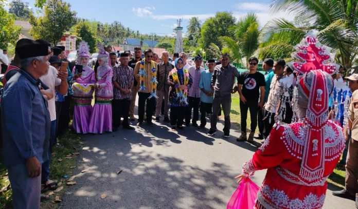 Tina Nur Alam mendapat sambutan meriah tarian adat dan pengalungan bunga dari masyarakat setempat.