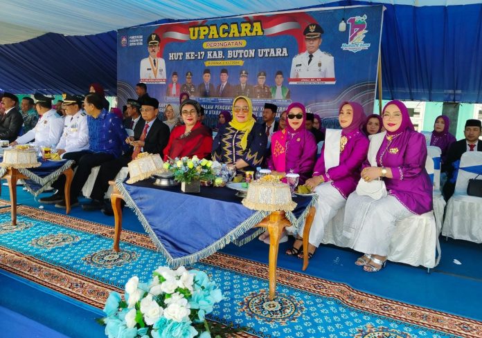 Upacara HUT Butur dipimpin Langsung oleh Bupati Ridwan Zakaria, turut hadir mantan Gubernur Sultra Nur Alam, tokoh masyarakat Butur Irjen Pol Purn Ansad Mbay, mantan Bupati Abu Hasan, dua mantan Pj Bupati Nasir Andi Baso dan Saemu Alwi, Wakil Bupati Butur Ahali serta para kepala OPD lingkup Pemkab dan Forkopimda Butur.