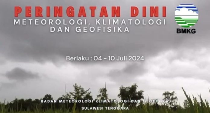 “Wilayah Konawe Kepulauan, Konawe Utara, Kolaka Utara, Kolaka, Konawe Selatan, Kendari, Kolaka Timur, dan Konawe berpotensi hujan sedang hingga lebat pada 4-5 Juli 2024,” tuturnya.