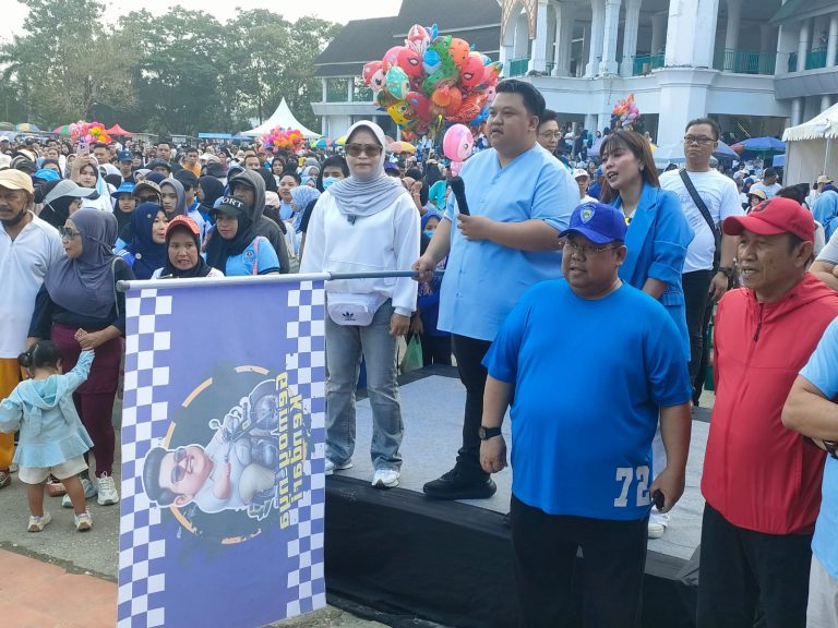 Masyarakat Kota Lulo tersebut nampak antusias mengikuti jalan santai/sehat Gemoy-nya Kendari, yang diramaikan penampilan artis ibukota dan sejumlah door prize.