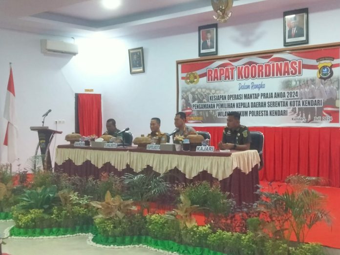 Kendari, Datasultra.com – Kepolisian Resor Kota (Polresta) Kendari menggelar rapat koordinasi dalam rangka kesiapan operasi mantap praja anoa 2024 untuk mewujudkan pemilu aman, nyaman, dan tertib sesuai yang diharapkan oleh masyarakat.