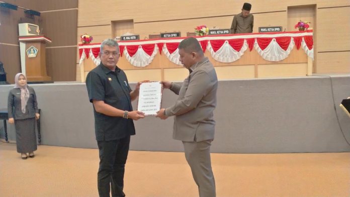 menjelaskan, bahwa penyerahan Raperda ini didasarkan pada ketentuan yang telah diatur dalam Peraturan Pemerintah Nomor 12 Tahun 2019 tentang Pengelolaan Keuangan Daerah yang sudah dijelaskan dalam pasal 194 dan 197.