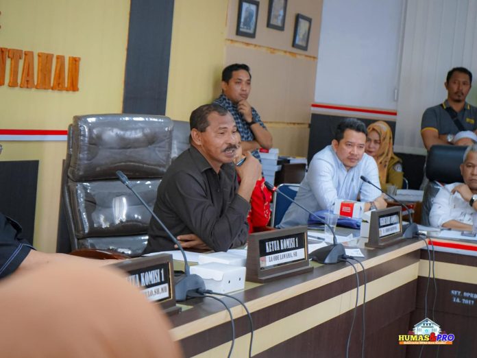 Rapat dipimpin Ketua Komisi I La Ode Lawama didampingi La Yuli dan Hasbulan dengan menghadirkan sejumlah pihak yang bermasalah yakni ahli waris Alm H. Saeka, pihak Perumahah Bumi Arum, warga yang mengadu, Pertanahan, Perbankan dan perwakilan dari pemerintah Kota Kendari.