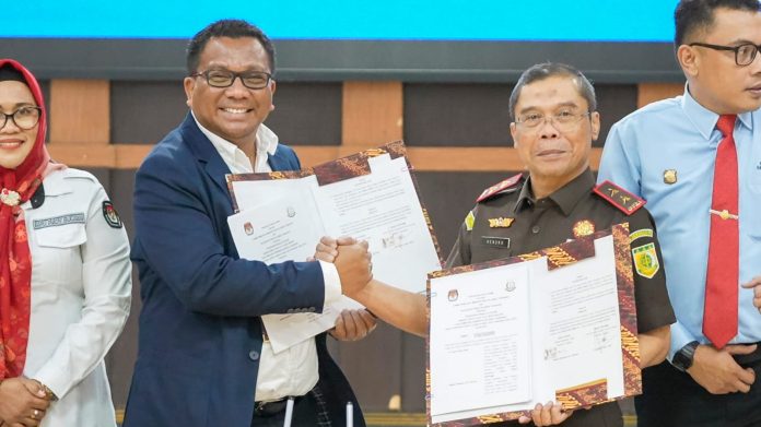 Penandatanganan kesepakatan bersama antara Kejati dan KPU bertempat di Aula Kantor Kejati Sultra, Jalan Jenderal Ahmad Yani, Kota Kendari, Senin, 29 Juli 2024.